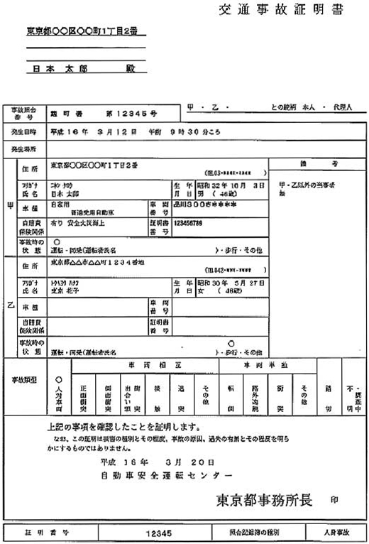 「いつどこで、だれと交通事故を起こしました」と証明してくれる書類です。